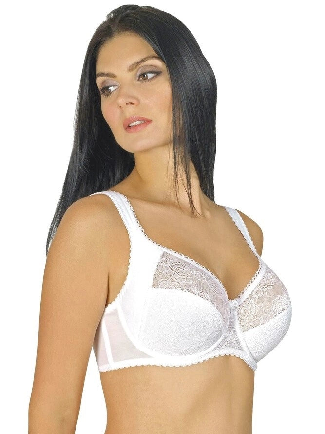 Delicate, elegant lace pairs perfectly with a smooth base fabric to create a flattering silhouette without compromising on softness. The underwired, half-padded cups offer natural shaping, while wide, cushioned straps gently distribute weight to reduce pressure on your shoulders especially ideal for fuller busts.